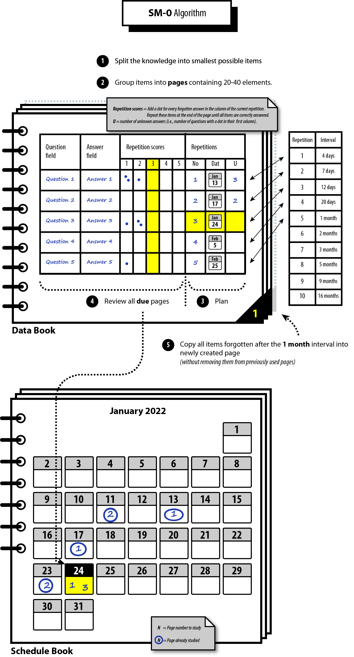 The two-component model of long-term memory still represents the foundation of SuperMemo since its introduction in SM-4 in 1989. Piotr Wozniak was pessimistic about a better, faster, and more effective algorithm as soon as 1994. The versions of the algorithm that appeared after that didn’t introduce a breakthrough improvement like SuperMemo did when it abandoned the SM-2 algorithm in 1989, the same algorithm that keeps popping up in new applications.