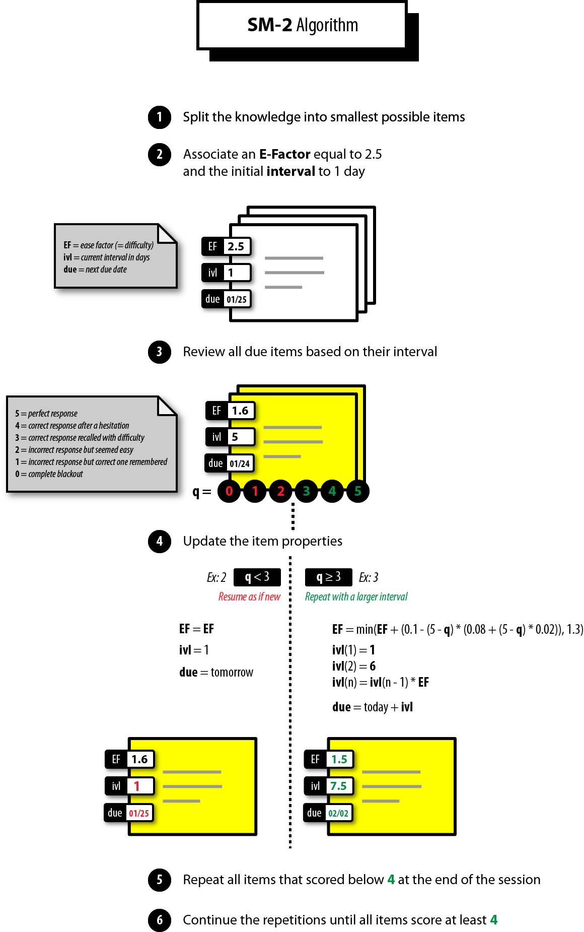 The details of the different algorithms differ greatly between systems. We will start by reviewing the most popular ones in history before introducing Anki’s solution.